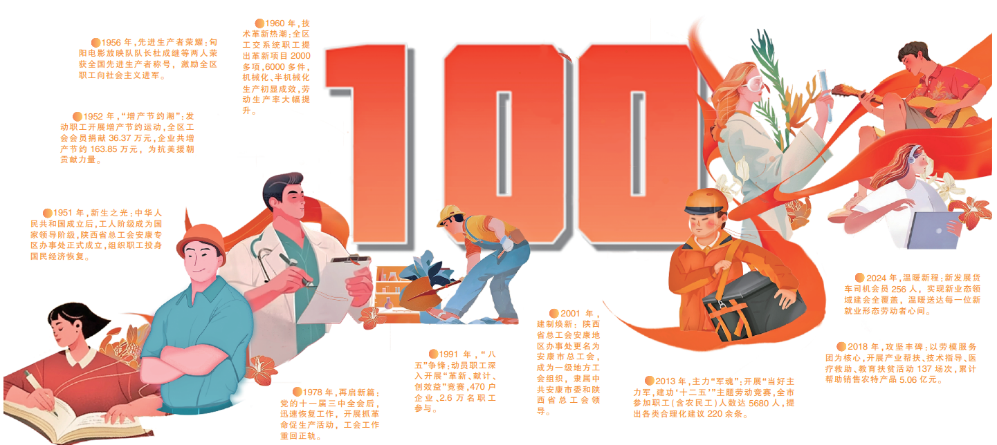 2025年,是全國(guó)總工會(huì)成立100周年,作為工人階級(jí)和廣大勞動(dòng)群眾的堅(jiān)強(qiáng)后盾,全國(guó)總工會(huì)為我國(guó)的社會(huì)進(jìn)步和經(jīng)濟(jì)發(fā)展做出了不可磨滅的貢獻(xiàn)。安康工運(yùn)事業(yè)從1925年漢水畔第一聲“勞工萬(wàn)歲”的吶喊,到深度參與三線建設(shè)、脫貧攻堅(jiān)、生態(tài)經(jīng)濟(jì)等重大戰(zhàn)略,再到新時(shí)代百萬(wàn)職工投身幸福安康建設(shè)的鏗鏘步履,始終與黨的事業(yè)血脈相連,與城市發(fā)展同向同行。