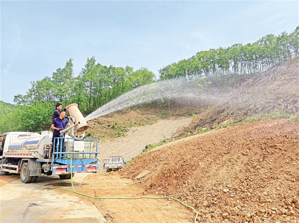 4月25日,平利縣長安鎮金沙河村安排運輸投送農業生產用水,對500畝烤煙幼苗進行灌溉。胡鈴鈴 攝