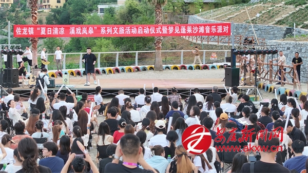 佐龍鎮黨委、政府因勢利導,開發了蓬萊仙境景區及馬宗村民宿集群,又把河灣變成了露天公共文化場所。他們舉辦的沙灘音樂節,邀請本地的音樂舞蹈愛好者駐場,鼓勵當地群眾、外來游客參與,以參與活動、宣傳活動的數量打卡積分,兌換文創產品和文化禮品。