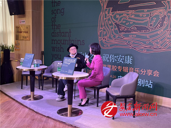 分享會由安康市融媒體中心主持人王倩擔任主持,她以簡潔有力的開場,引出本次活動的核心人物——被譽為“西北民謠詩人”的陳小虎。陳小虎登臺后,首先與主持人共同展開“人與城”的深度藝術對談,他分享了《祝你安康》的創作契機,并闡述了在數字時代堅持制作黑膠專輯的文化意義。