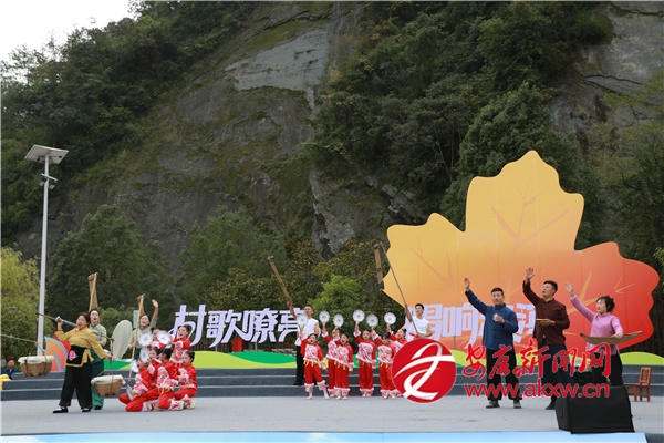 金秋時節的茨溝鎮,萬畝紅葉、層林盡染。伴隨著歡快的鑼鼓聲,茨溝鎮、五里鎮、譚壩鎮三支隊伍輪番登場,不僅獻唱原創村歌,還展示特色產業、優質資源與地方文化,紛紛亮出獨具特色的“看家絕活兒”。歌伴舞《村歌飛揚》《松壩謠》《幸福歌兒唱起來》唱出了鄉親們的幸福生活;以修建八一水庫為背景的安康歌謠《我來了》引發會場共鳴;民俗表演《龍的傳人》則將節目推向高潮。舞蹈、鄉村T臺秀、民俗表演、八岔戲等節目,或以傳統幽默詼諧的風格,或以深情敘述的方式,展現鄉村新生活,為觀眾獻上一場別開生面的視聽盛宴,現場歡呼聲此起彼伏。tD9安康新聞網