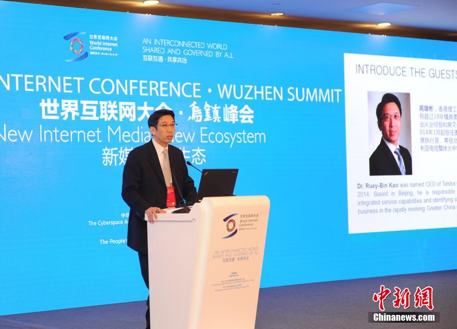 11月19日,澳大利亞電信大中華區CEO高瑞彬在烏鎮舉行的首屆世界互聯網大會新媒體分論壇上發言。當天,世界互聯網大會在浙江烏鎮拉開帷幕。 中新社發 李晨韻 攝