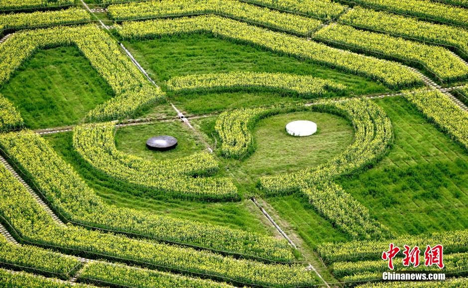 3月24日,安徽齊云山油菜花盛開金黃與一個“太極八卦圖”相映成趣。 中新社發 施廣德 攝