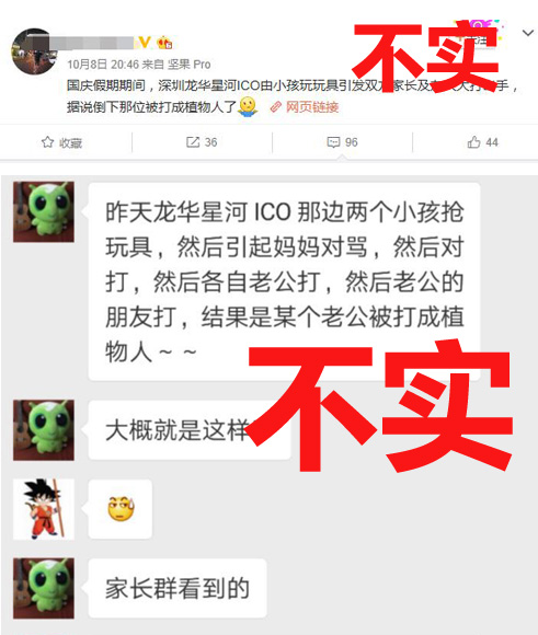 9日0時6分,深圳市公安局官微在這條通報下留言提醒網民:家長們在處理小孩子之間輕微矛盾時一定要理性對待、保持克制,網傳有家長被打成“植物人”情況不實,請朋友們別傳播不實信息,該案件在進一步調查中。