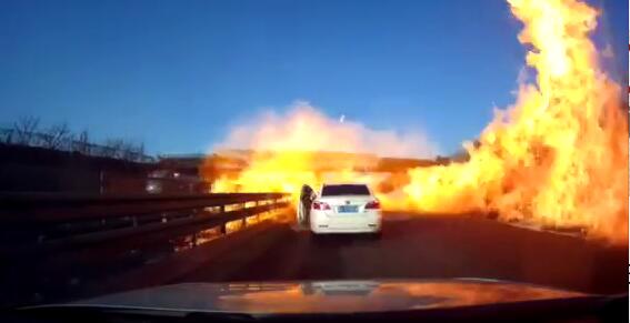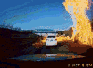 網傳行車記錄儀的視頻顯示,2月11日8時許,前方高速公路上有一輛油罐車側翻在地,記錄儀所在車輛停在路中,女司機說“后面(車)不倒我咋倒(車)”。此時右前方一輛小汽車往油罐車方向開了一點,正待倒車,突發巨響,車底爆燃,一瞬即被迅速蔓延的火焰吞沒。而正前方白色小汽車司機棄車急速向后奔跑。隨即行車記錄視頻中傳來所在車中女子的尖叫哭泣聲,有男子催促倒車加油,另有女子安慰。隨著記錄儀所在車輛緊急倒退,視頻中可見高速路旁樹木綠地成片燃燒,火光沖天。倒車約30秒后,這輛車終于離開了起火范圍。