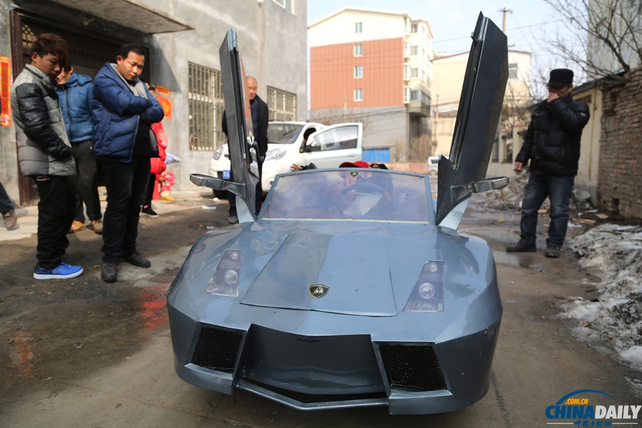 2014年2月19日,河南省鄭州市二七區,一輛手工自制的跑車吸引了不少市民觀看。