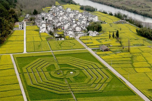 3月24日,安徽齊云山油菜花盛開金黃與一個“太極八卦圖”相映成趣。近日,在安徽黃山市休寧縣齊云山腳下南坑村360多畝盛開金黃的油菜花叢中,一個巨型的“太……