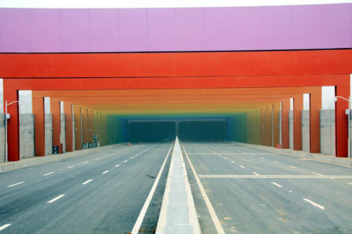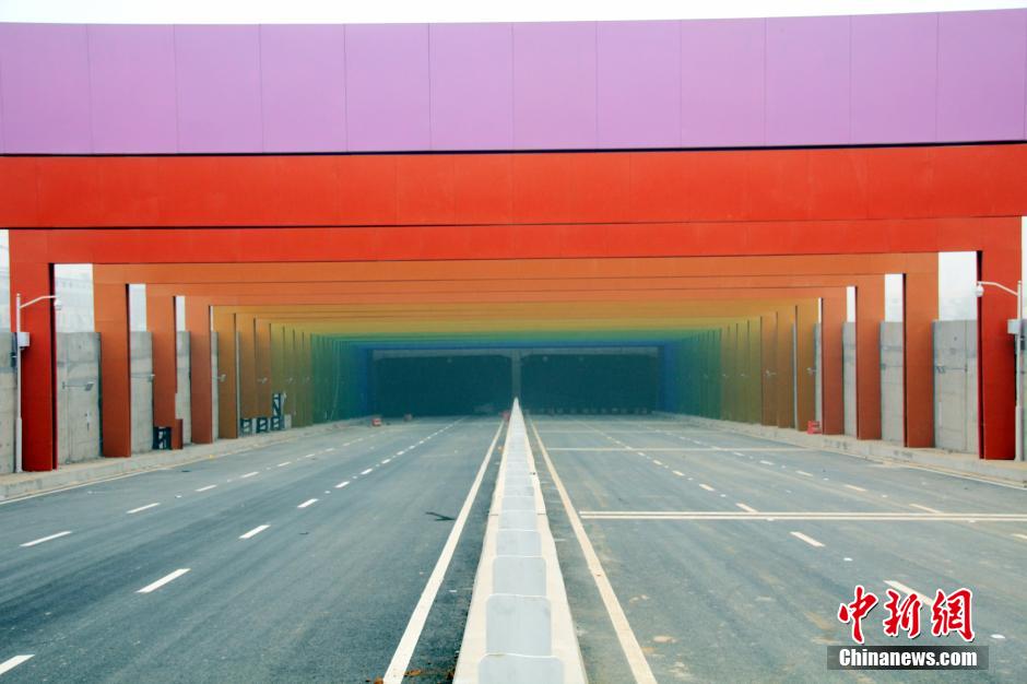 2015年1月15日,河南省鄭州市中牟縣鄭開大道與S223省道交叉口的“彩虹隧道”吸引路人目光。該彩虹隧道長約400米,由三段組成,中間部分和普通隧道一樣,南北兩端……
