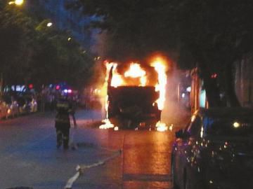 站臺前公交車燃起熊熊大火昨日晚上7:10左右,一輛5路公交車行駛至宜賓市一醫院文星街站臺時突發燃燒,公交車被燒成“光架架”。據宜賓市一醫院晚8點半統計,事故……
