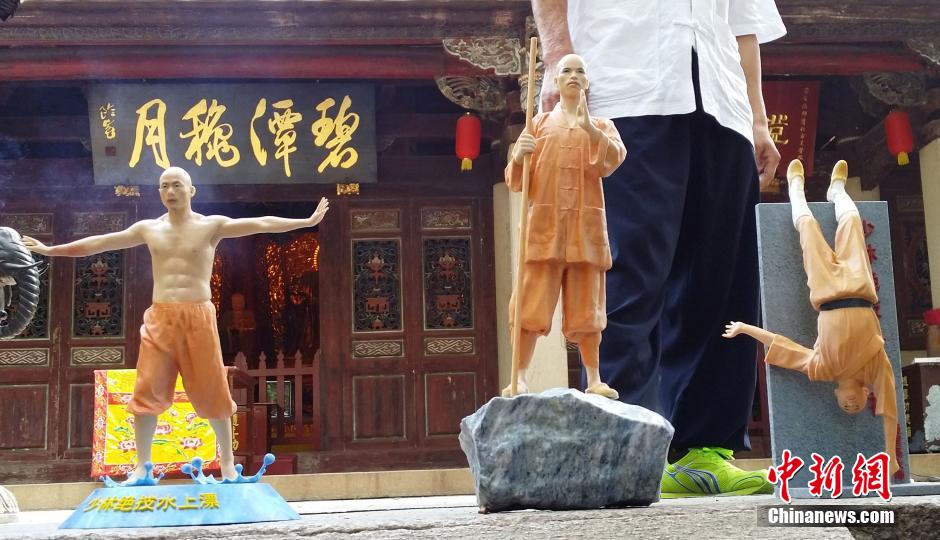 “水上漂”、“一指禪”、“鐵頭功”……一尊尊造型逼真,形態(tài)生動(dòng)的3D人物造型亮相福建泉州南少林寺。5月27日,福建泉州南少林……