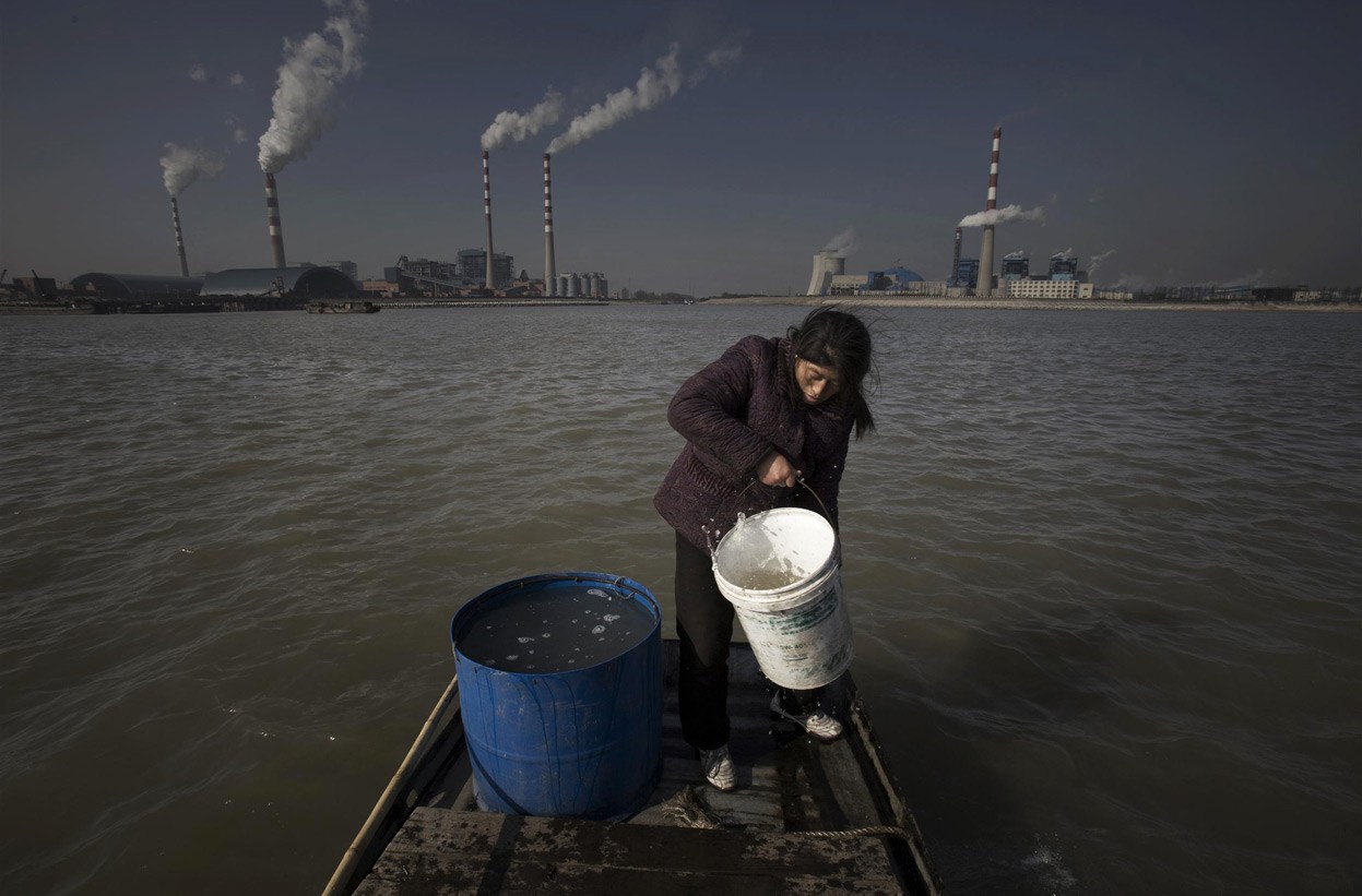 楊林港的一名婦女正從長(zhǎng)江里打水。楊林港共有50多戶漁民,幾十年來(lái)一直以捕魚為生,喝的都是長(zhǎng)江水。過(guò)去幾年,長(zhǎng)江的污染越發(fā)嚴(yán)重,散發(fā)出一股奇怪的味道。2003……
