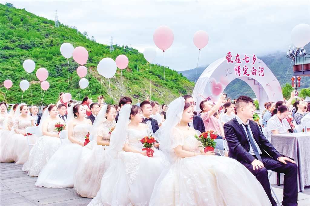 8月29日上午,“愛在七夕·情定白河”2025年白河縣新時代文明實踐集體婚禮主題活動在河街寶石文化廣場浪漫啟幕。來自各行各業的8對“珍珠婚”夫婦、8對新人齊聚一堂,通過分享婚姻保鮮秘訣、頒發結婚證、簽訂承諾書、開展婚姻家庭輔導等簡約而莊重的儀式,在各界代表和親朋好友的見證祝福下,開啟幸福婚姻新篇章,用實際行動踐行婚事新辦、喜事儉辦的文明新風尚。(紀道婭 攝)pQy安康新聞網