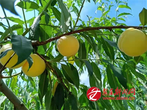 本網訊(通訊員 王文藝 安靜 李軍)一口香甜四溢,兩口暑熱漸消。眼下,漢陰縣雙乳鎮江河村的黃桃即將成熟,沉甸甸的果子掛滿枝頭,綠樹掩映間,金燦燦的果子肉汁……
