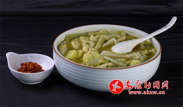 “甜酒火燒饃”,是石泉縣幾代人美食智慧的積累,傳承至今,是深受人們喜愛的小吃。它是采用古老傳統(tǒng)老酵面加甜酒發(fā)面,將老酵面、甜酒加入溫水后,再加入面粉一起攪拌均勻后再揉面。把面團揉制光亮后放置幾小時待其自然發(fā)酵。等到面團成發(fā)泡蜂窩狀態(tài),才可以開始將面團做成圓形,在用搟面杖搟薄圓形面團放入柴火灶鍋中,撒上芝麻,小火炕制一面黃在翻面炕制兩面色澤金黃。吃進嘴里有小麥淡淡的清香味,也有甜酒的甜香味,回味無窮。杜光發(fā)制作的這道小吃獲得安康市2024年“安康味道”名小吃。