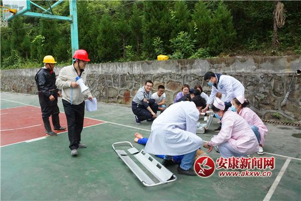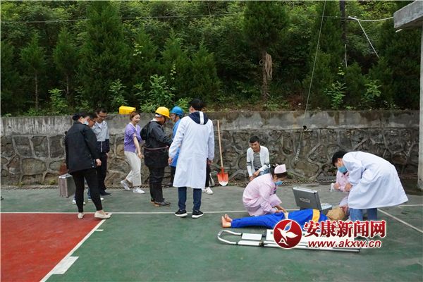 演練模擬事件背景 由于長時間降雨,鎮坪縣醫院籃球場處發生大面積滑坡,滑坡面積蔓延至醫院大樓,導致至少1人被困,3人重傷,5人輕傷,滑坡仍在持續。值班室人員發現此事件后,立即向應急辦公室報告。應急辦立即將情況報告給潘院長及主管局。潘院長迅速趕到現場并宣布立即啟動應急預案、開通綠色通道。5分鐘內醫療救援組、應急聯絡與信息發布組、應急搶險組等8個工作組迅速到位,分別在各自崗位展開工作。SNt安康新聞網