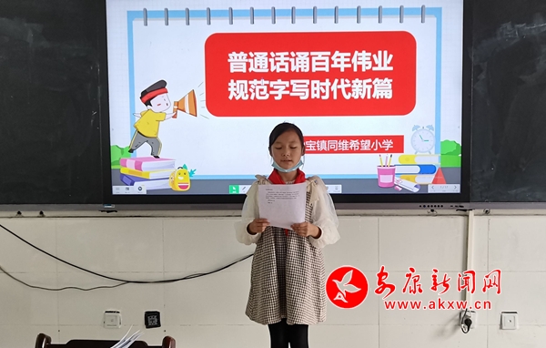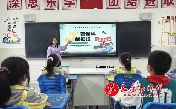 在課間,學校師生以具體形象、通俗易懂的語言,詮釋了自己對普通話和規范簡化字的認識。在主題班會上,各班借助PPT、宣教片等形式向學生科普了普通話的由來、普通話水平等級、不規范簡化字、《通用語言文字法》的解讀、文學名著中的偏僻字音等知識,號召大家“講普通話,寫規范字”,積極主動地弘揚民族語言文化。jPj安康新聞網