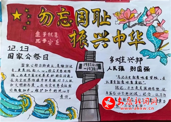 為緬懷抗戰(zhàn)先烈的英雄事跡,牢記侵略戰(zhàn)爭給中國人民造成的深重災(zāi)難,增強(qiáng)少年兒童的社會(huì)責(zé)任感和使命感,12月13日,曾家初級中學(xué)組織開展了以“勿忘國恥 吾輩自強(qiáng)”為主題的國家公祭日主題宣傳教育活動(dòng)。(圖文/吳金蕾) Efg安康新聞網(wǎng)