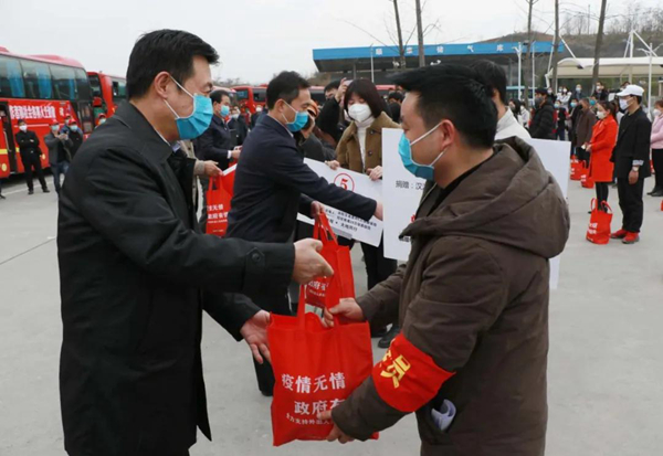 郭青在歡送儀式講話中指出,受新冠肺炎疫情影響,很多企業一度停工停產、復工延長,加之省際客運班線尚未完全開通,致使我市大量外出務工人員無法及時返崗就業。群眾的揪心事就是政府的操心事,群眾的困難就是政府的責任,通過開通點對點直達包車等方式,使廣大外出務工人員能夠放心外出、安全返崗,早一點實現致富增收,家人少一點路途牽掛。