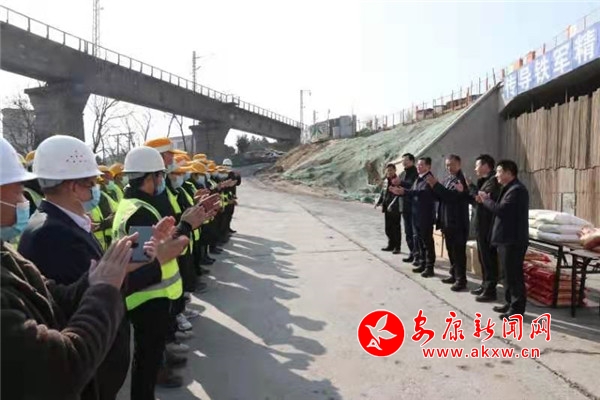 在北環(huán)線施工現(xiàn)場,高晶華指出,北環(huán)線建設(shè)是拉大城市骨架、提升通行順捷、疏解城市壓力的控制性工程。項(xiàng)目開工以來,大家心懷筑路夢,不畏艱與辛,主體工程推進(jìn)順利,市委、市政府和全市人民對你們表示敬重和感謝。希望大家搶抓時機(jī),排除困難,保障質(zhì)量,安全施工,確保如期建成通車。