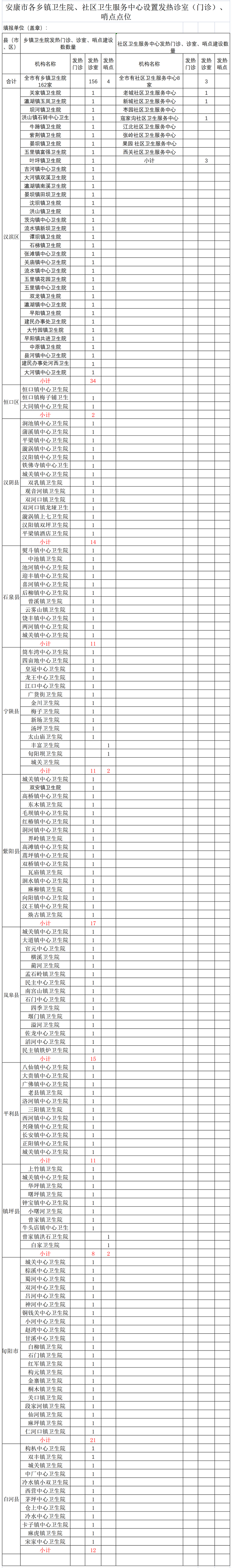 安康市各鄉鎮衛生院、社區衛生服務中心設置發熱診室(門診)、哨點點位