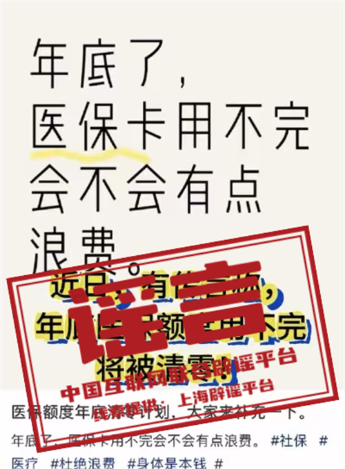 真相:臨近年底,社交平臺上關于“醫(yī)保額度”的話題,如“職工門診統(tǒng)籌額度再不用完,12月底就要清零了”“要抓緊時間用,不然白白浪費了”又熱了起來。經(jīng)求證發(fā)現(xiàn),所謂的“年底清零”純屬無稽之談,此前已被多地醫(yī)療保障局公開辟謠。