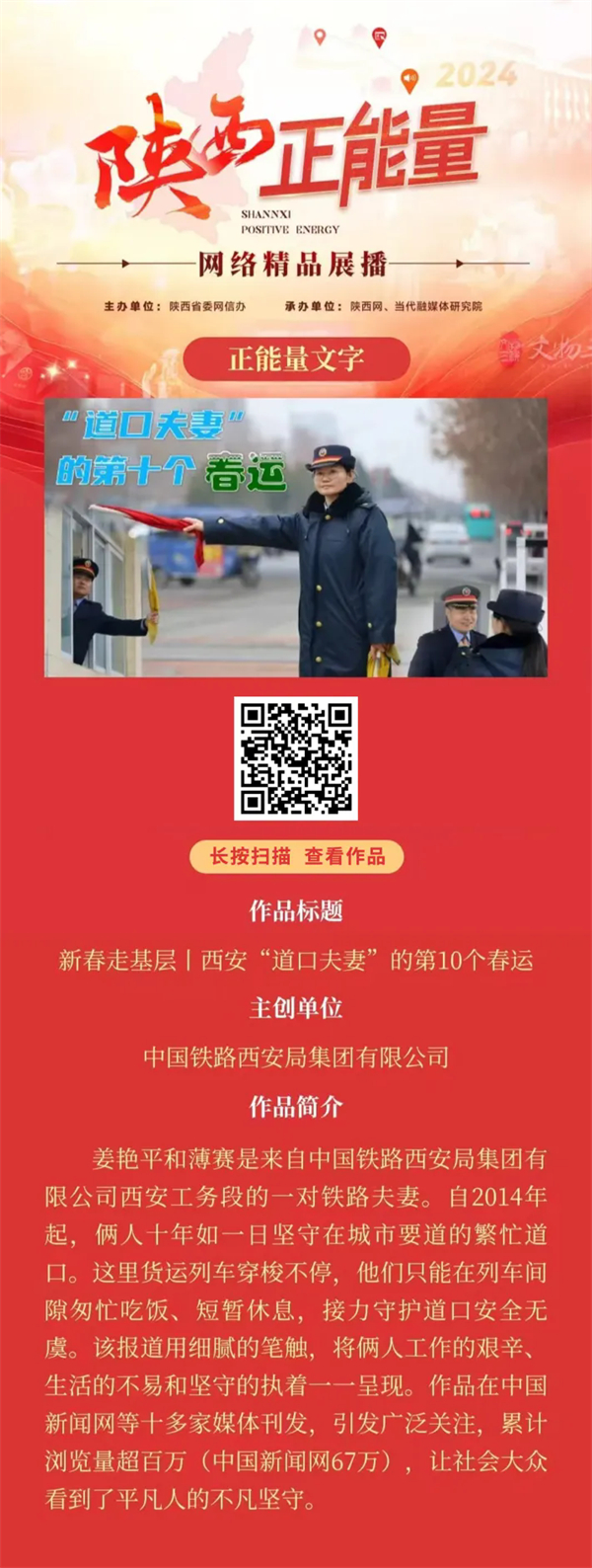 2024陜西正能量網(wǎng)絡(luò)精品展播丨正能量文字:新春走基層丨西安“道口夫妻”的第10個春運(yùn)