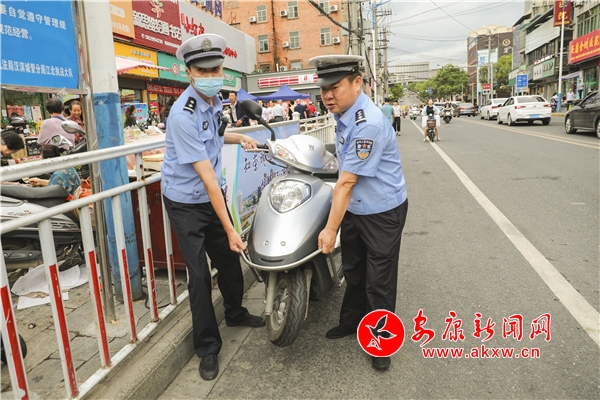 7月27日,江北交警、志愿者服務隊對中渡街交通和市容進行治理。(郭曉康)